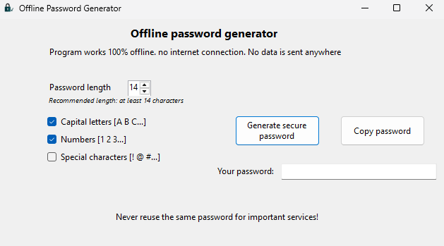 - Offline Password Generator for Windows